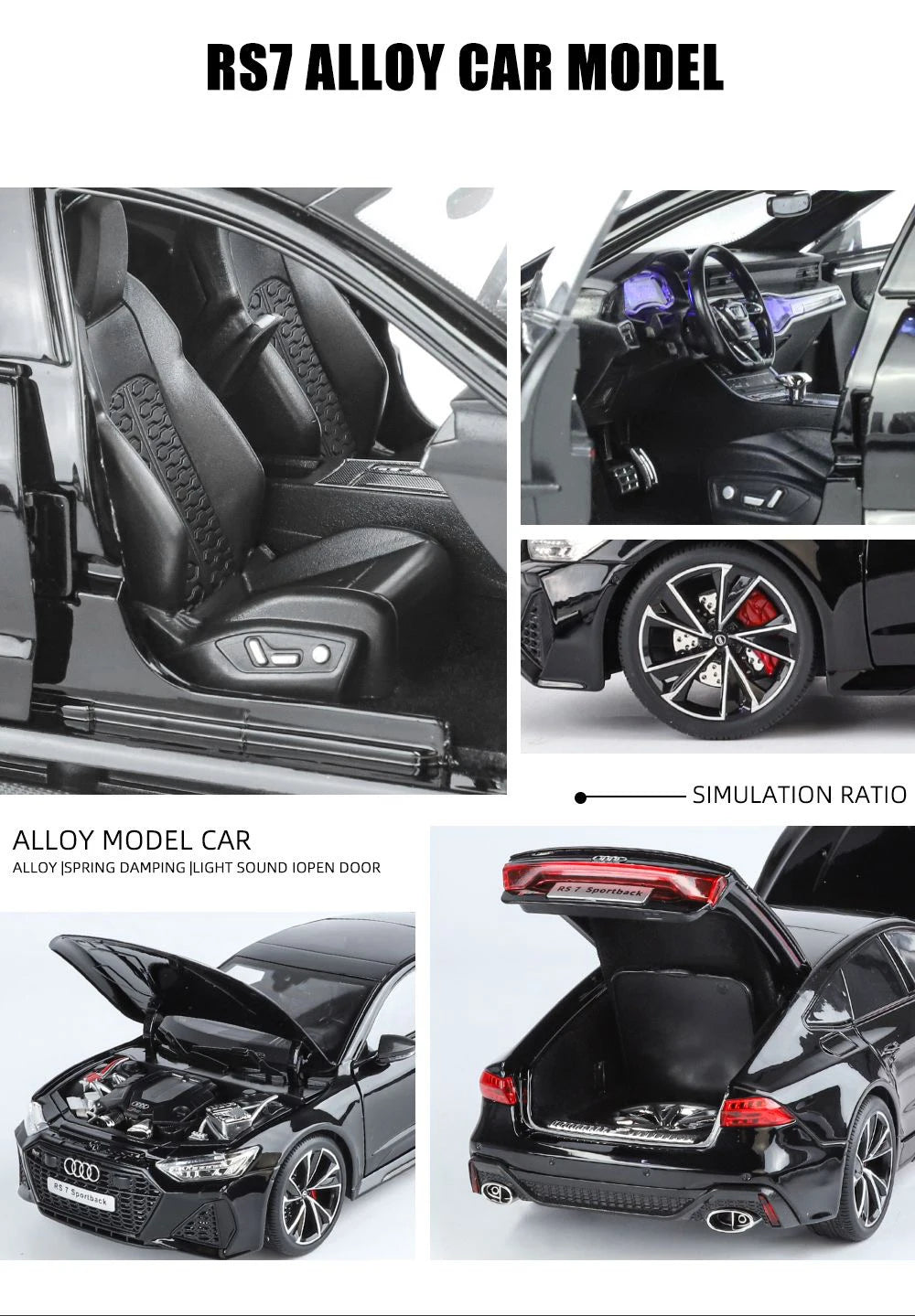1:18 Key Remote Control Version AUDI RS7 Alloy Sports Car Model Diecast Metal Racing Car Vehicle Model Sound Light Kids Toy Gift