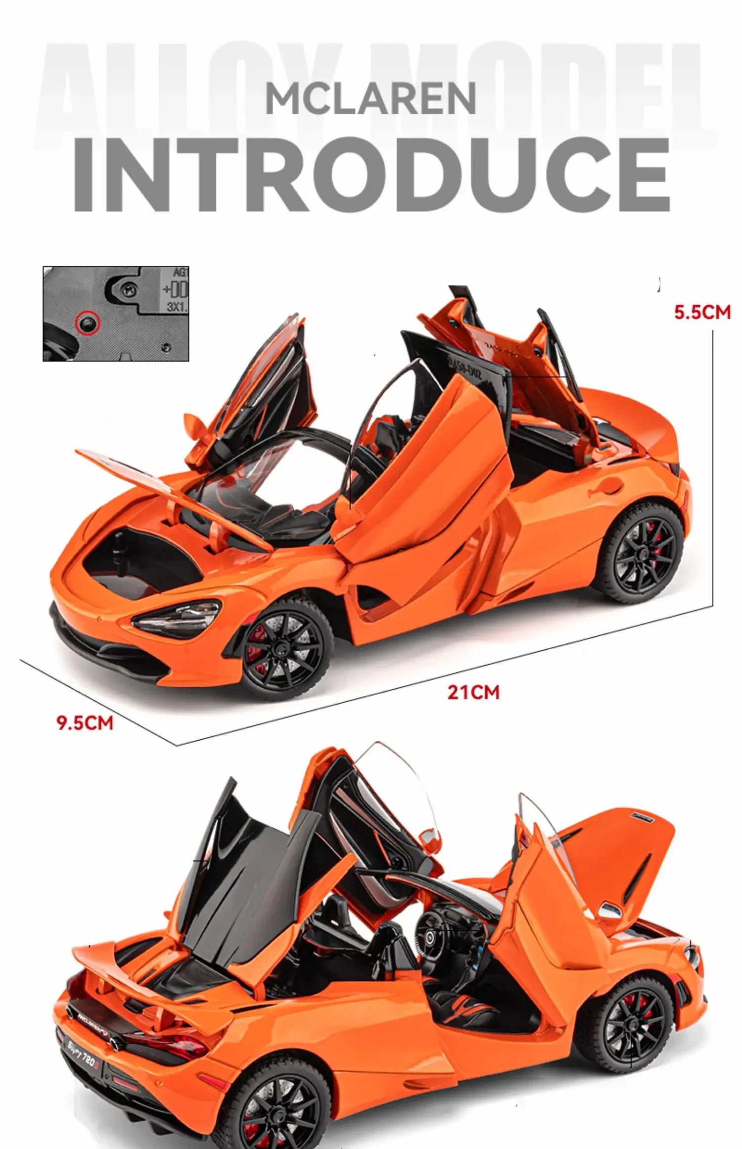 1:24 McLaren 720S Alloy Racing Car Model Diecast Metal Sports Car Model Simulation Sound and Light Collection Childrens Toy Gift