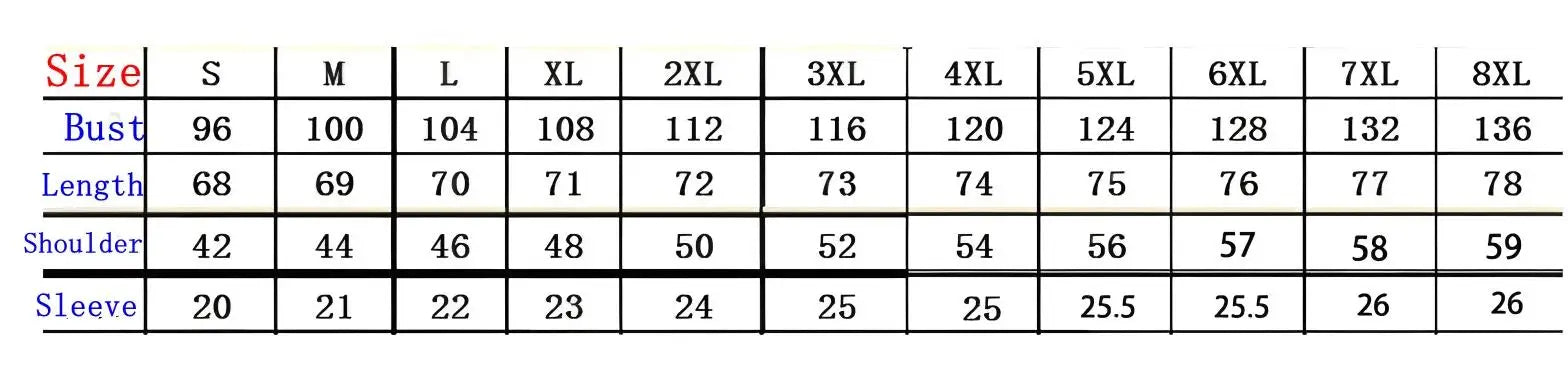 size_info: {"sizeInfoList":[{"length":{"cm":"96","inch":"37.80"},"size":"S","vid":-1},{"length":{"cm":"100","inch":"39.37"},"size":"M","vid":-2},{"length":{"cm":"104","inch":"40.94"},"size":"L","vid":-3},{"length":{"cm":"108","inch":"42.52"},"size":"XL","vid":-4},{"length":{"cm":"112","inch":"44.09"},"size":"XXL","vid":-5},{"length":{"cm":"116","inch":"45.67"},"size":"XXXL","vid":-6},{"length":{"cm":"120","inch":"47.24"},"size":"4XL","vid":-7},{"length":{"cm":"124","inch":"48.82"},"size":"5XL","vid":-8},{"length":{"cm":"128","inch":"50.39"},"size":"6XL","vid":-9},{"length":{"cm":"132","inch":"51.97"},"size":"7XL","vid":-10},{"length":{"cm":"136","inch":"53.54"},"size":"8XL","vid":-11}]}